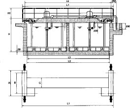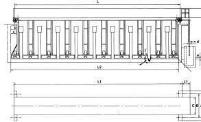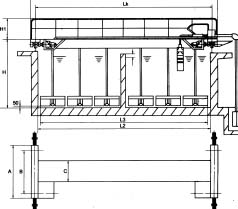 軌距L (m) | 軌距B (m) | 車速 (m/min) | 電機(jī)功率 (kW) | 鋼軌型號(hào) | A | C | L1 | L2 | L3 | H | H1 | |